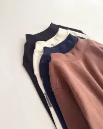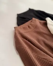 بلوز یقه اسکی کشبافت پنبه زنانه آستین انگشتی