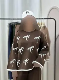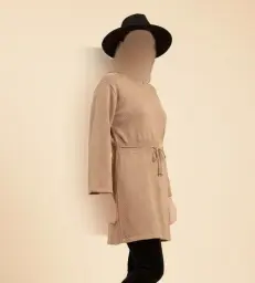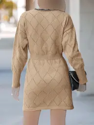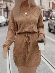 مانتو بافت زنانه یقه گرد کمربند دار طرح لوزی کالکشن پاییزه