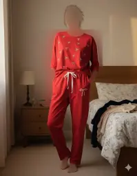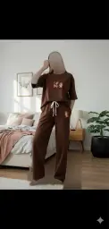 ست راحتی زنانه طرح قلب، شلوار بگ و بلوز نخی