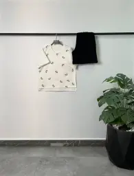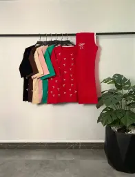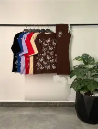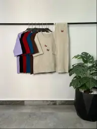 ست تیشرت و شلوار بگ زنانه طرح گلدوزی پروانه