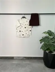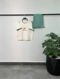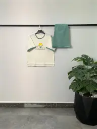 ست تیشرت و شلوارک نخی قواره بزرگ طرحدار زنانه