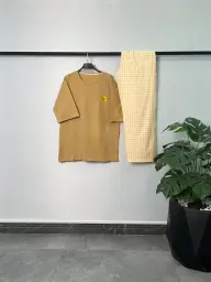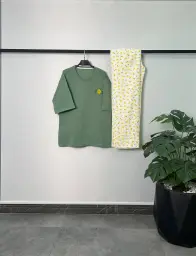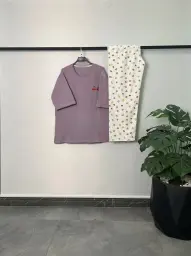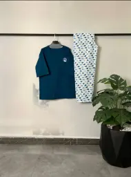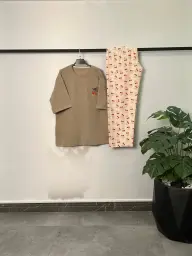 ست تیشرت لانگ و شلوار بگ طرحدار زنانه