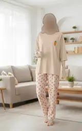 ست تیشرت و شلوار راحتی زنانه طرح عروسکی چاپی
