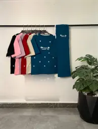ست تیشرت و شلوار بگ زنانه طرح گلدوزی