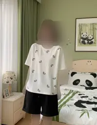 ست تیشرت و شلوارک راحتی زنانه طرح دار پنبه ای