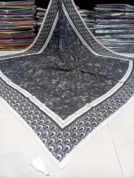 شال کوک دوزی مشکی منگوله دار سایز 190x70