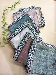 روسری پاییزه دست دوز طرح پلنگی و زنجیر سایز 140x140