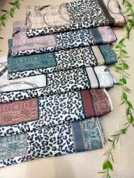 روسری زنانه برشکا پاییزه شاین دار طرح پلنگی و لوگو