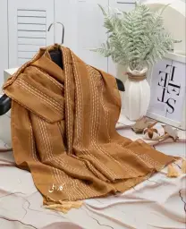 روسری پاییزه دست دوز طرح دار نخی سایز 140x140